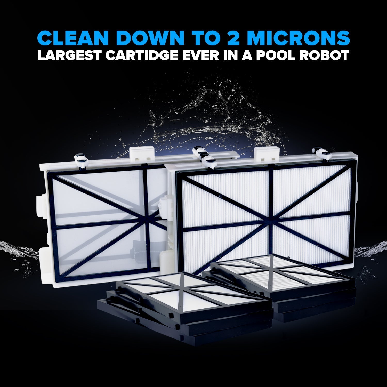 - No messy bags to clean. Massive top-loading cartridge filters captures and traps fine and ultra-fine debris for an optimal clean swimming pool.